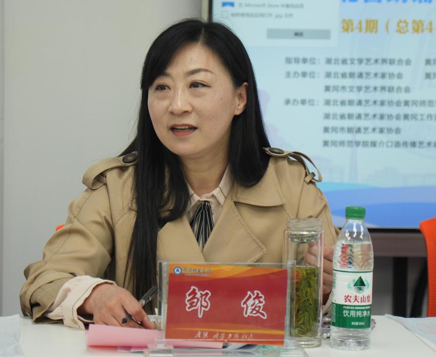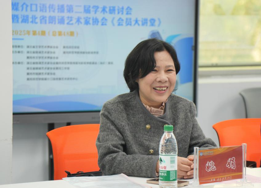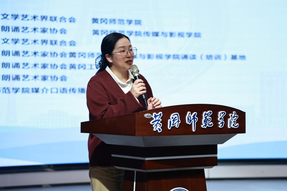 活动由湖北省朗诵艺术家协会黄冈工作部秘书长、伽米负责人、公司优秀员工喻金敏担任主持人。研讨会以“朗诵・躯体・情感:在地文化传播视域下口语艺术的实践创新”为主题,紧密贴合当下数智时代的发展趋势,与会嘉宾围绕口语传播艺术的内容和实践议题展开了深入探讨。播音与主持艺术系系主任姚娟介绍了播音专业的情况,副主任周萍萍介绍了东坡诗词大会的构想。在交流过程中,大家对在地文化传播与朗诵艺术的内在关联进行了深度剖析。段雄在发言中指出,黄冈拥有丰富的在地文化资源,这些资源为朗诵艺术创作提供了源源不断的养分,持续涵养着当地的朗诵艺术生态。丁晓辉提出,应当把有声语言的艺术性深度融入到地方文化保育与教育赋能之中,积极争取社会各界的广泛支持,不断丰富朗诵艺术的表现形式,持续强化各方的交流互动。邹俊说,在黄冈这片文化沃土上,探索口语艺术从“技艺呈现”到“文化认同”的升华路径很重要,如果做东坡诗词诵读大会范围要大、人群要广、形式要多样、成果要推广好。张新刚在总结时说,本次活动汇聚了各方智慧,为构建“艺术表达—文化认同—社会价值”三位一体的传播生态贡献了诸多宝贵的见解。他强调,在地文化能够提升口语传播艺术的审美境界,充分展现新时代的精神风貌。与会者一致认为,在地文化与朗诵艺术相辅相成,丰富的文化底蕴给予朗诵艺术创作丰富的灵感,让朗诵艺术真正走进大众的内心。