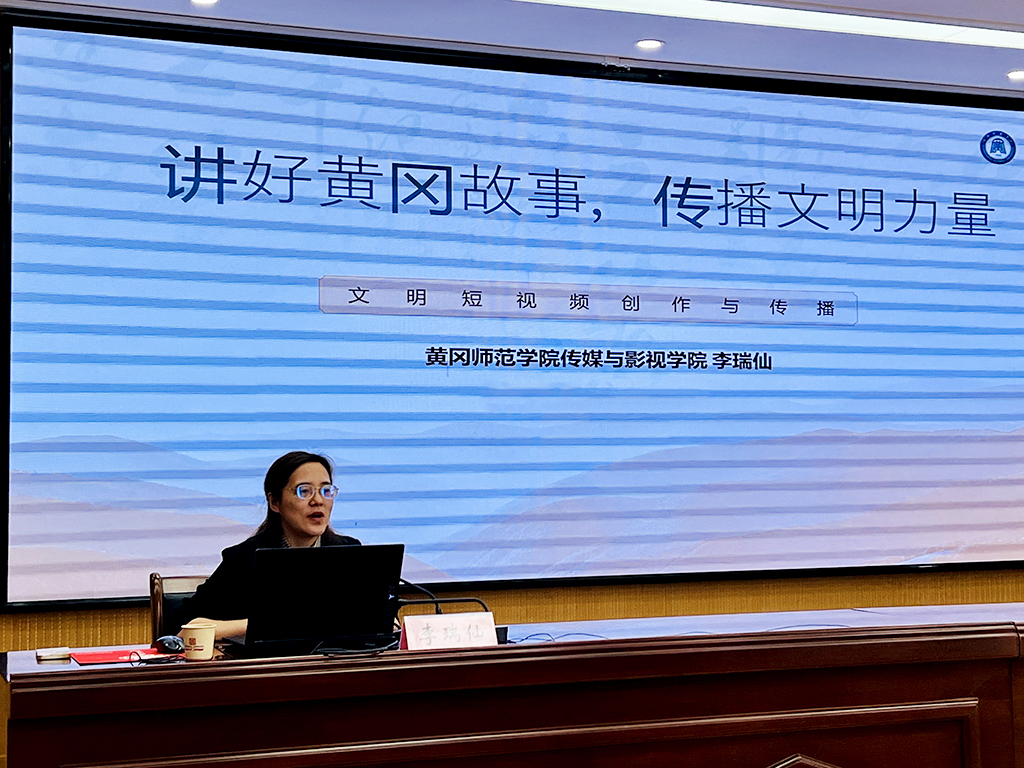 李瑞仙博士以《讲好黄冈故事,传播文明力量——文明短视频创作与传播》为题,围绕“选题策划—剧本创作—拍摄技巧—剪辑表达”四个环节,系统讲解了文明类短视频从策划到落地的全流程方法。她结合黄冈地方文化资源,分享了“深度—细度—强度”三维选题模型、“人+事+景”点式切入法以及AI文案创作工具在短视频创作中的应用,建议参训人员用接地气、有温度的方式讲好本地文明故事。