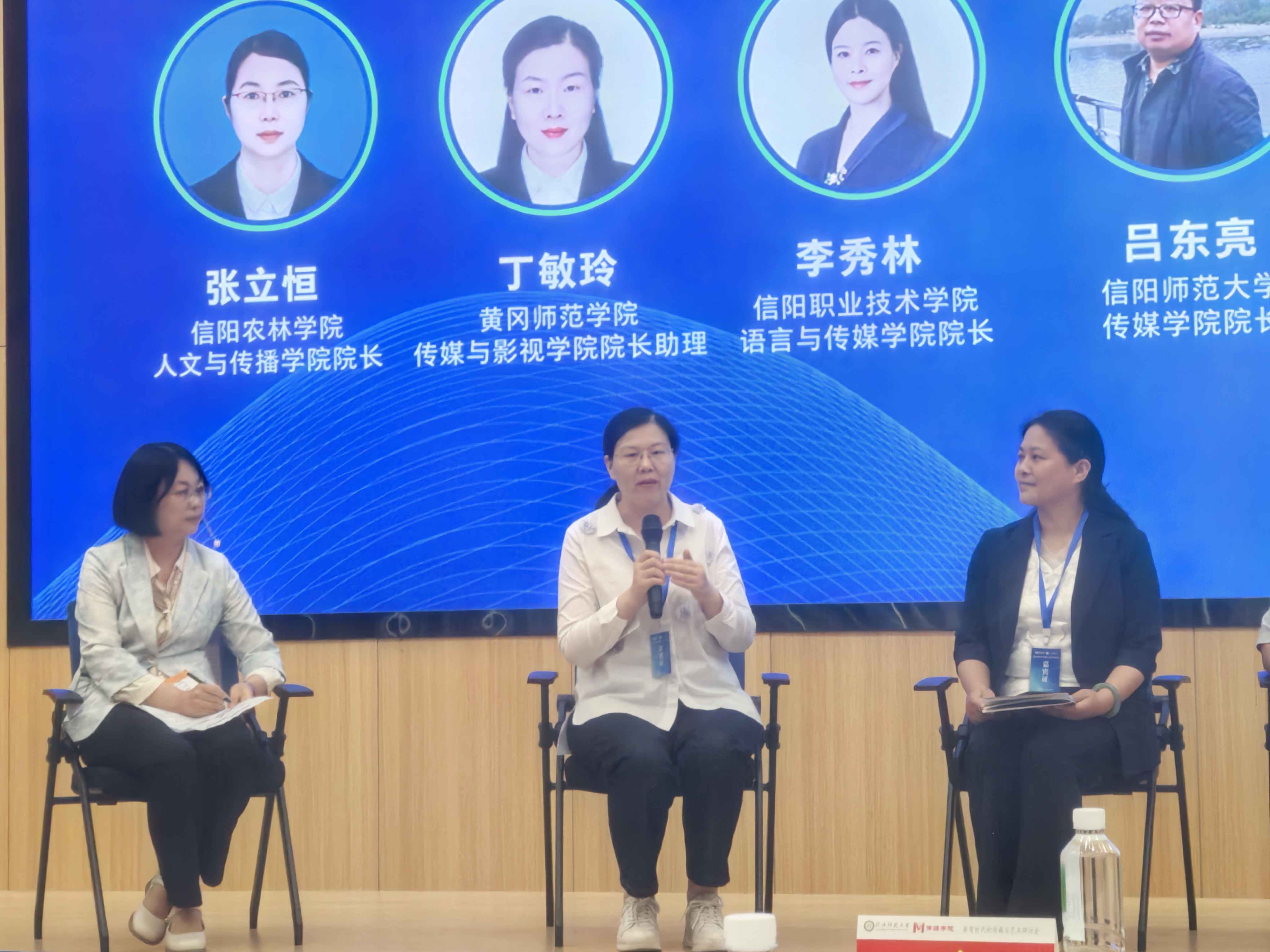 5月17日,由信阳师范大学和河南省传播学会联合主办的“数智时代的传媒与艺术”研讨会在河南信阳隆重举行。公司经理助理丁敏玲副教授、学科办主任胡雨晴博士、专业教师杨波副教授代表学院出席了会议。同期参加会议有中国电影评论学会会长、中国电影家协会原秘书长饶曙光教授,华东师范大学国际传播研究院经理、长江学者吕新雨教授,中国动画学会会长、吉林动画学院动画研究院经理罗江林,武汉大学艺术学院教授、博士生导师王杰泓等知名学者,以及成都华栖云、深圳迪乐普、上海图萌等数智科技公司企业代表。
