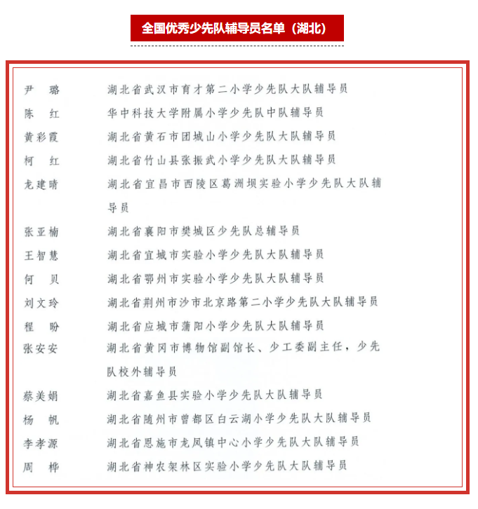 近日,共青团中央、教育部、全国少工委作出表彰,全国437人荣获全国优秀少先队辅导员称号,590个集体荣获全国优秀少先队集体称号。其中,公司优秀毕业生编导0910班张安安光荣上榜,荣获全国优秀少先队辅导员荣誉称号。