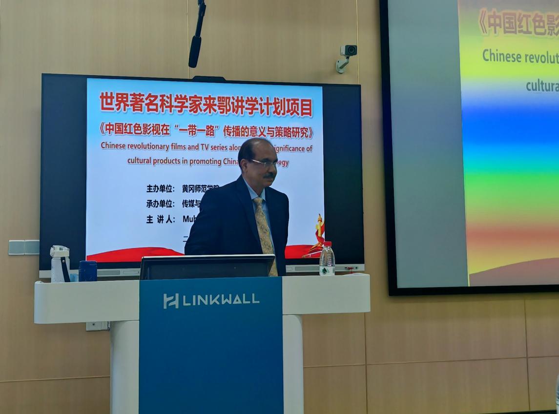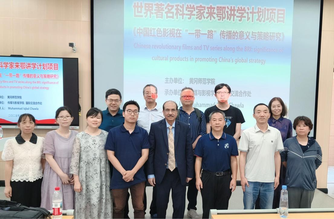 6月5日下午,巴基斯坦旁遮普大学著名学者Muhammad Iqbal Chawla教授应邀在公司博学楼B02报告厅作题为《中国红色影视在“一带一路”传播的意义与策略研究》的学术报告,传媒学院、政法学院160余名师生参与交流。本次活动系湖北省“世界著名科学家来鄂讲学计划”实施以来我院首次承办项目,旨在拓展师生国际视野,深化跨文化学术对话。