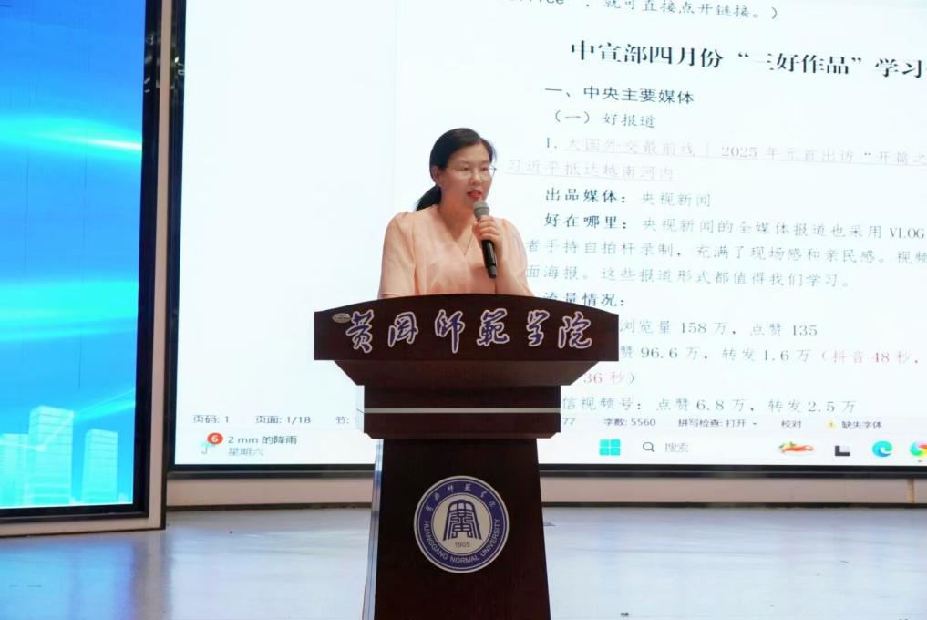 为洞察媒体前沿,提升育人质量,6月12日下午,湖北日报传媒集团编委、高级编辑陈力峰博士应邀在传媒楼演播厅作了题为《今天我们怎么做记者——从获奖作品看融合报道发展趋势》的讲座,讲座由经理助理丁敏玲主持,公海贵宾会员检测中心百余名师生聆听了讲座。