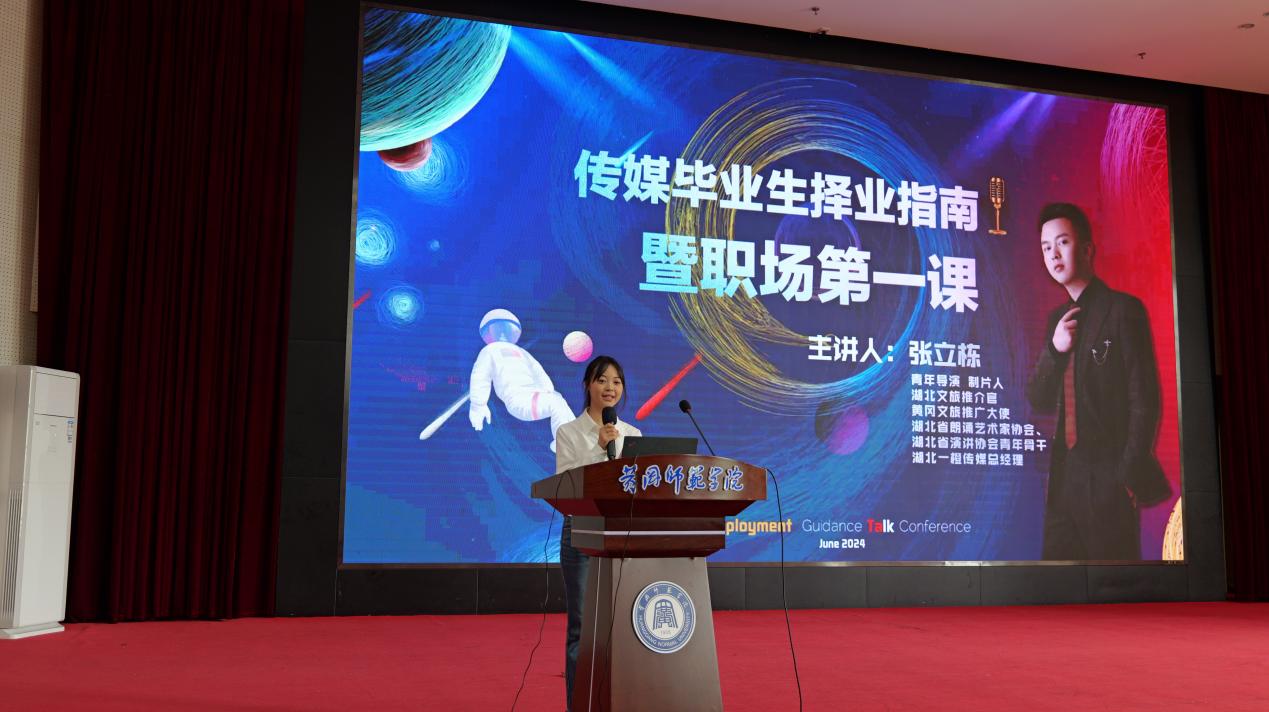张新刚首先致欢迎词,对张立栋及团队的到来表示热烈欢迎与感谢,并介绍其作为青年导演制片人、湖北文旅推介官等多重身份及行业成就,为讲座拉开序幕。