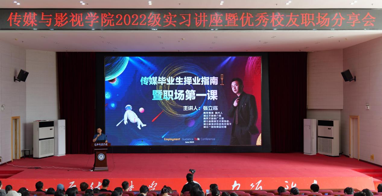 6月18日上午10时,公海贵宾会员检测中心在南区厚德楼学术报告厅举办“传媒毕业生择业指南暨职场第一课”讲座,2010级优秀员工、一橙传媒总经理张立栋为2022级全体员工带来职场经验分享。副经理张新刚、一橙传媒核心团队及2022级全体员工出席活动,会议由播音2201班龙秋蓉主持。