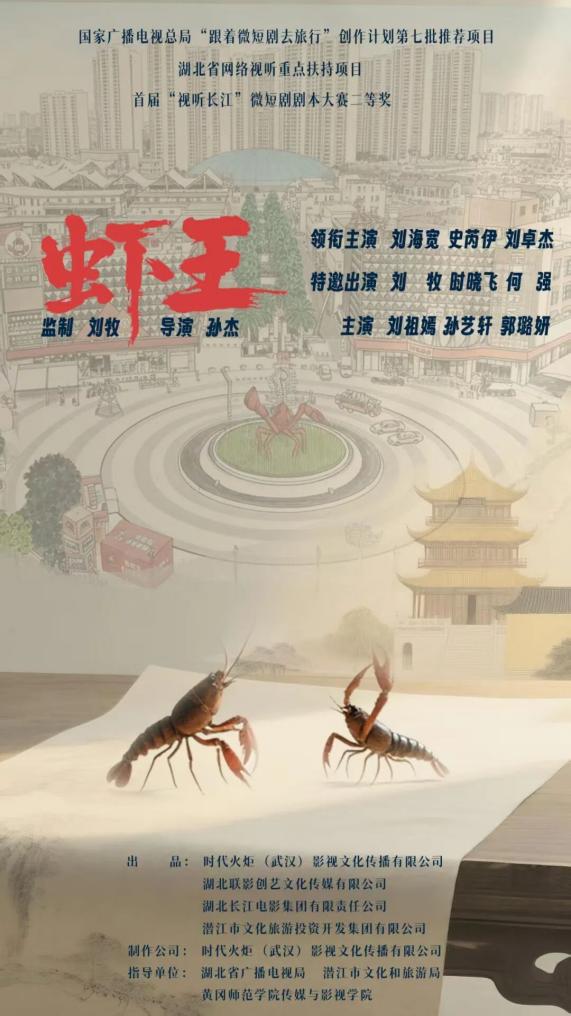近日,国家广电总局“跟着微短剧去旅行”创作计划第七批推荐剧目名单正式公布,由公司2004级优秀毕业生、青年导演孙杰执导的微短剧《虾王》成功入选,并在2025长江文化艺术季“视听长江”网络传播周开幕式上获隆重推介。